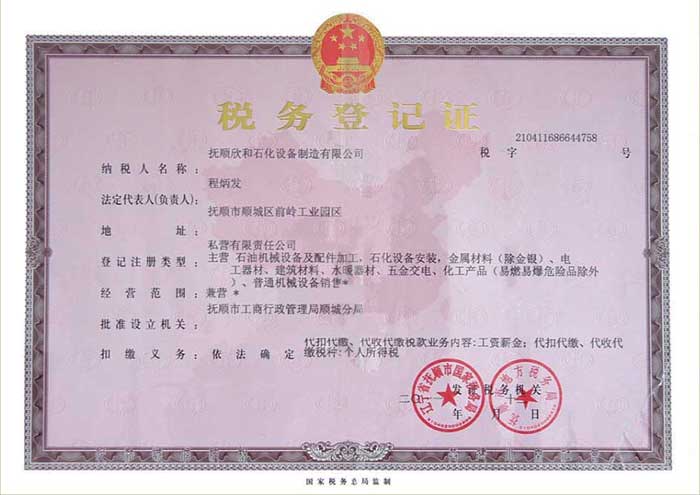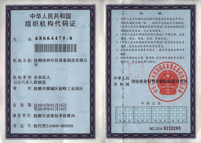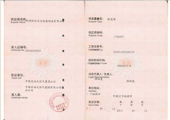 企业资质您的位置: 欣和石化设备制造有限公司 - 首页 > 企业资质